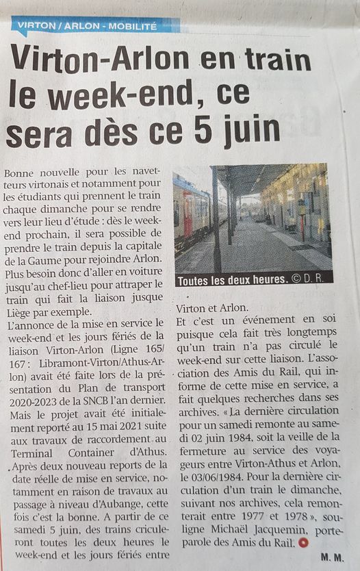 La_Meuse_01-06-2021_Virton-Arlon le WE en train dès 5 juin Publié le 18-06-2021 à 526 × 834 dans La_Meuse_01-06-2021_Virton-Arlon le WE en train dès 5 juin